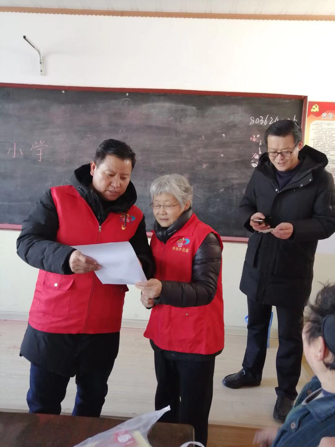 白发苍苍的爱心人士本次资助人之一的刘瑞敏大姐,不畏严寒,和我们一块完成了此次帮扶款送达活动,感恩大姐的无私奉献与付出。
