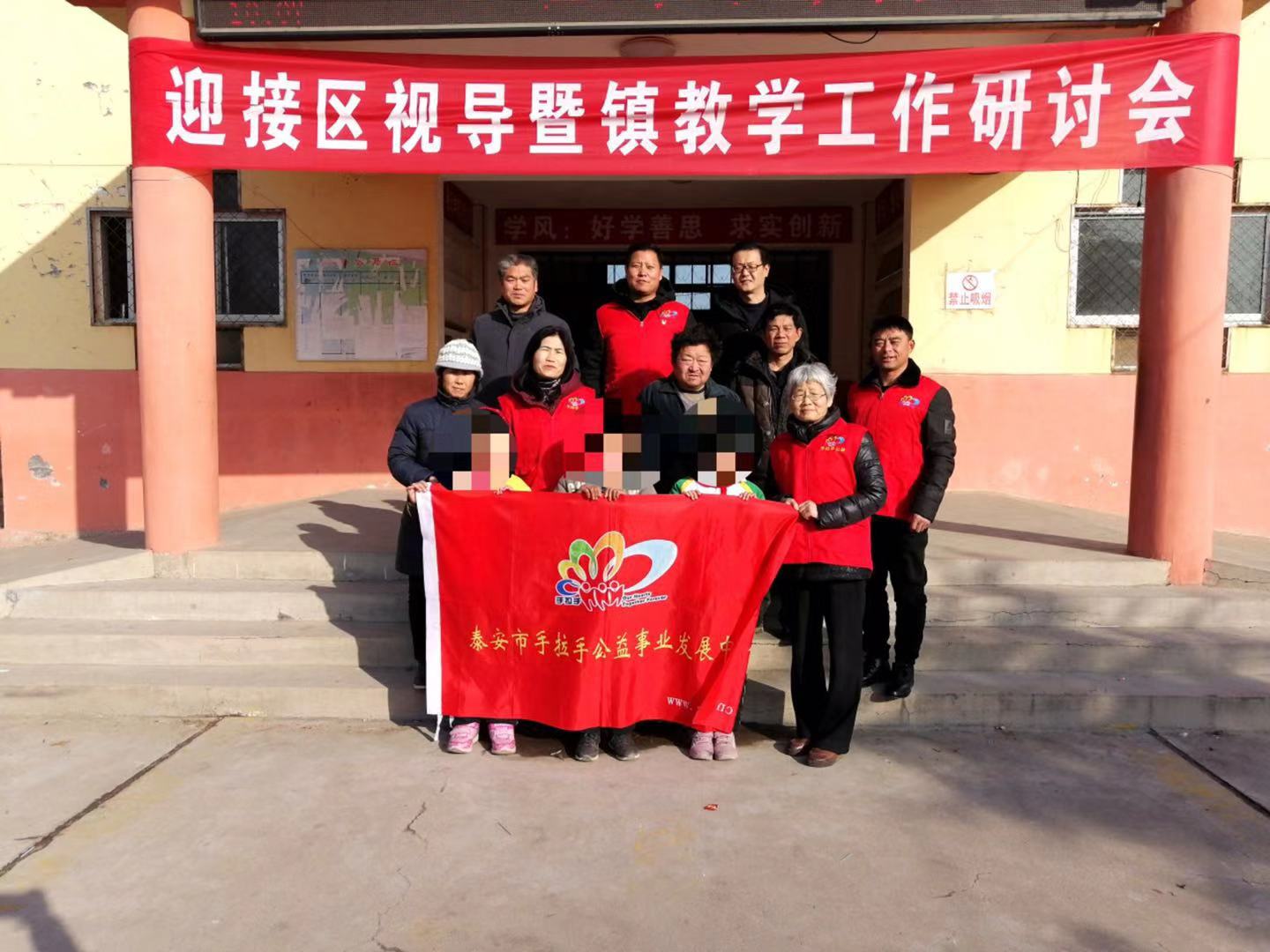 2019年12月27日上午,泰安手拉手公益的志愿者们,在寒冷的三九天,冒着严寒,带着爱心人士捐助的微爱助学金一大早就来到高新区良庄镇延东小学,为家庭困境的孩子们送达帮扶款。