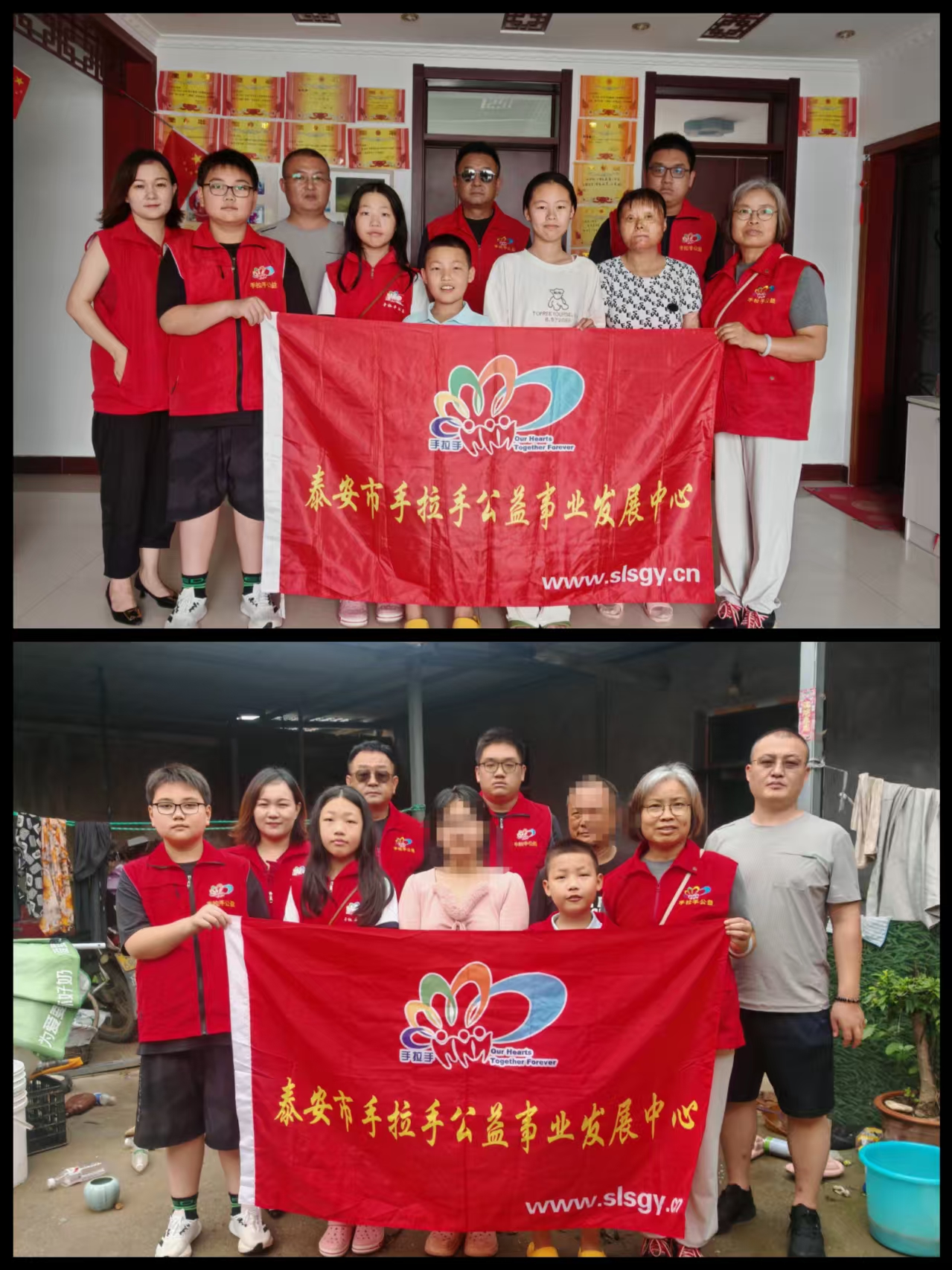 2025年7月23日一早,泰安市手拉手公益事业发展中心的志愿者冒着酷暑赶往岱岳区山口镇和黄前镇,对两个乡镇长期帮扶的困境家庭学生进行入户回访,并送达帮扶款物,为孩子们的学习与生活提供切实支持。
