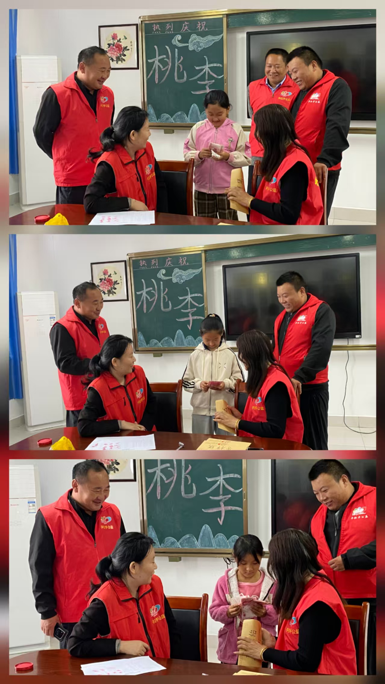 接过帮扶款的小怡(化名)紧紧攥着信封,小声说了句“谢谢”。他的父亲常年在外打工,母亲身体不好,家里的重担压得这个刚上五年级的男孩比同龄孩子更显沉稳。志愿者蹲下身,拍着他的肩膀说:“钱要好好用在买文具和书本上,有困难就跟老师说,也可以给我们打电话。”小浩用力点头,眼里泛起了泪光。